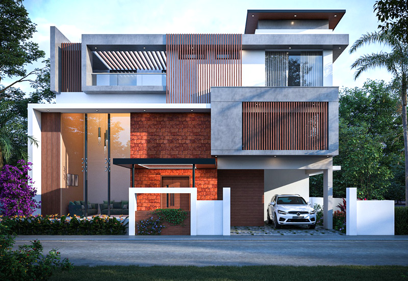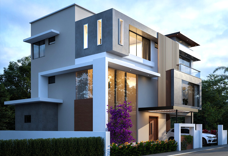 3500 sq.ft. 4BHK contemporary home equipped with gym, home theatre etc nearing completion at Thevara, Kochi. Turn key project where our team handled everything from sanctions to design to construction.